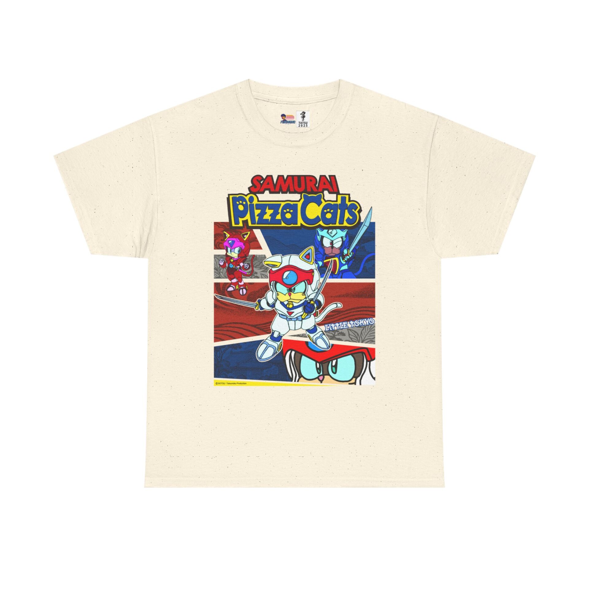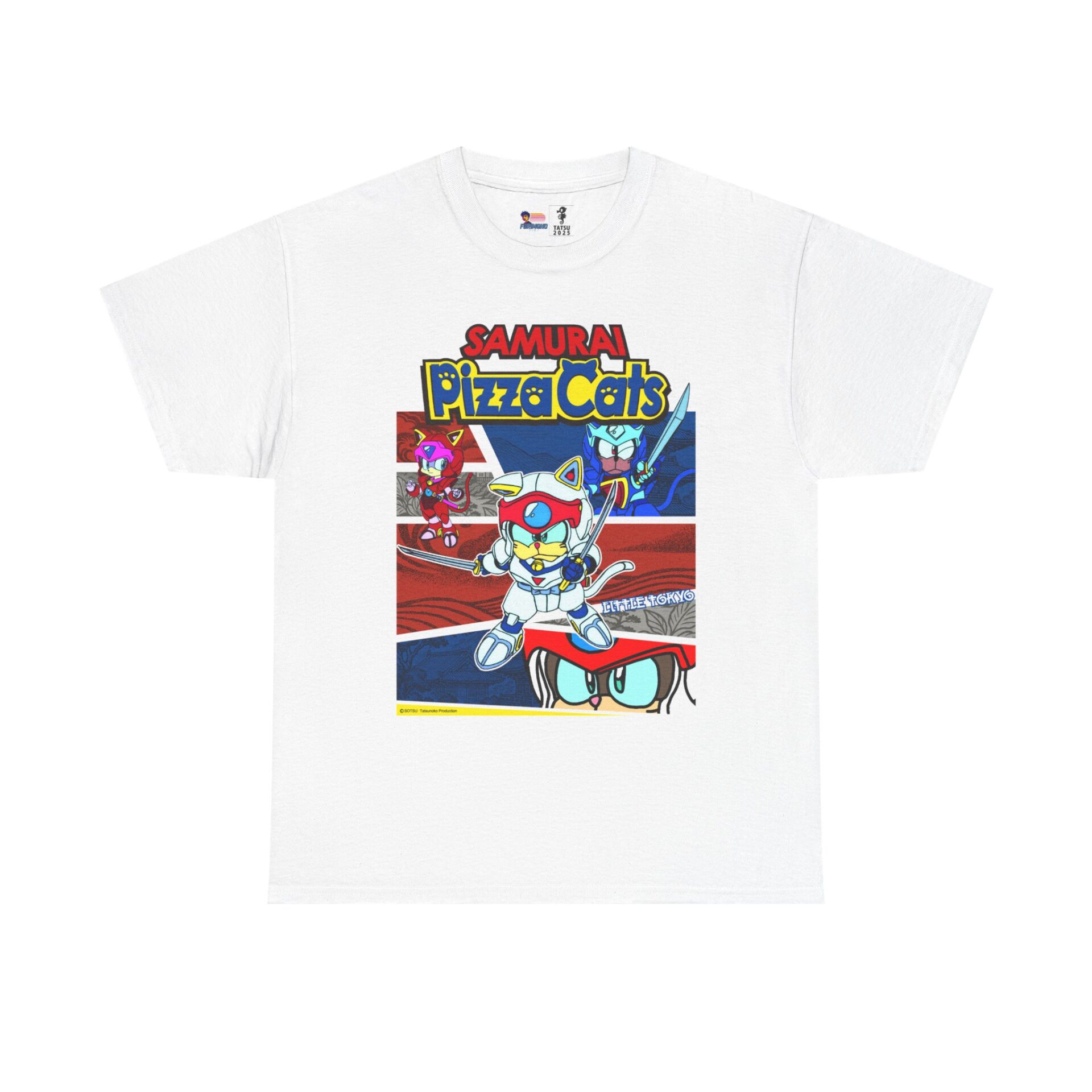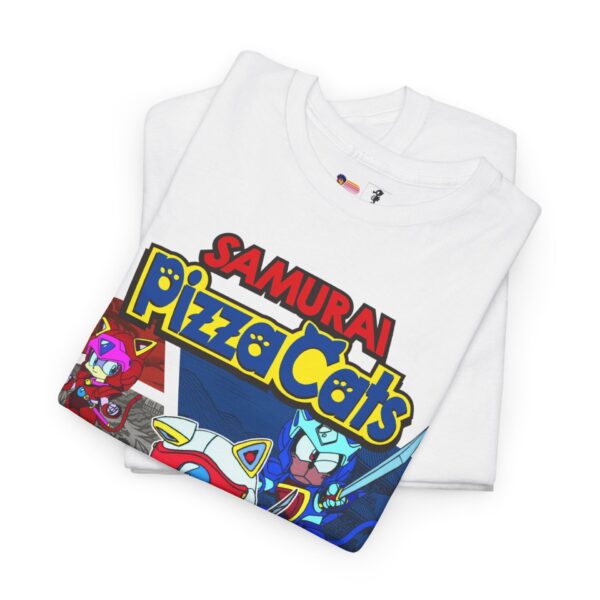 Bright, playful, and a little bit nostalgic — this cotton tee brings a comic-book energy to everyday wear. A bold, colorful front print shows adventurous cartoon cats in samurai armor racing across a stylized cityscape, giving the shirt a retro arcade vibe. The classic crew neck and relaxed cut let the graphic take center stage while staying comfortable for long wear. It layers easily under a jacket or stands out on its own during casual meetups, gaming nights, or pop-culture conventions. Built to last and soft to the touch, this tee feels like something you’d reach for when you want to show fandom with a wink and a grin.